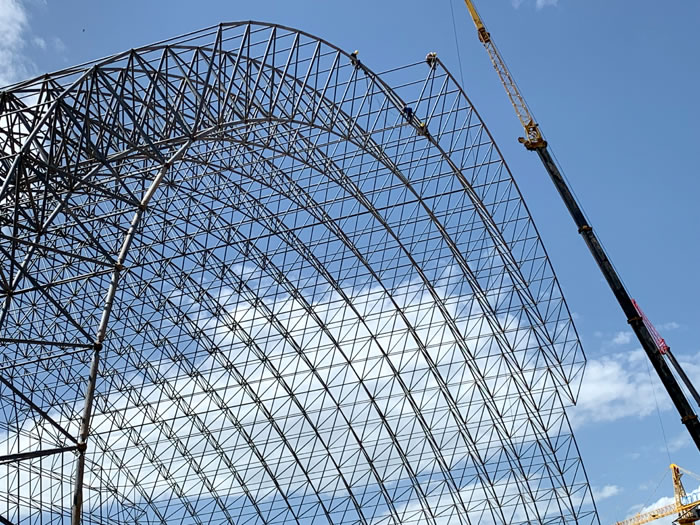 (2)网架加工前应对现场尺寸进行复测,确认无误后方可进行加工、安装;网架制作、运输、安装应遵守《空间网格结构技术规程》JGJ7-2010、《钢网架莱西螺栓球节点》JG/T 10-2009、《钢网架莱西螺栓球节点用高强度螺栓》 GB/T 16939-2016、《莱西钢结构莱西工程莱西施工规范》 GB50755-2012、《莱西钢结构莱西工程施工质量验收标准》 GB50205-2020。